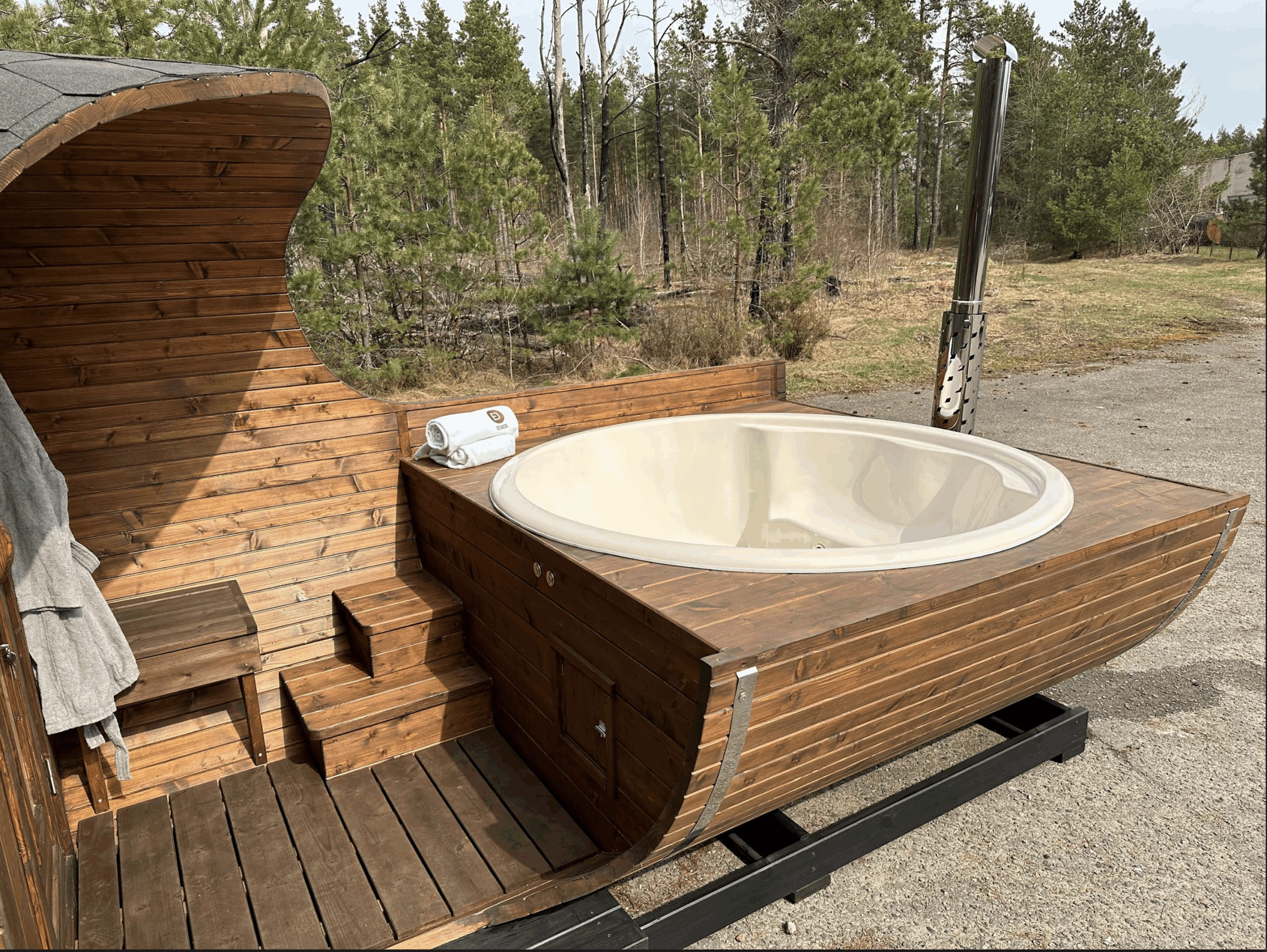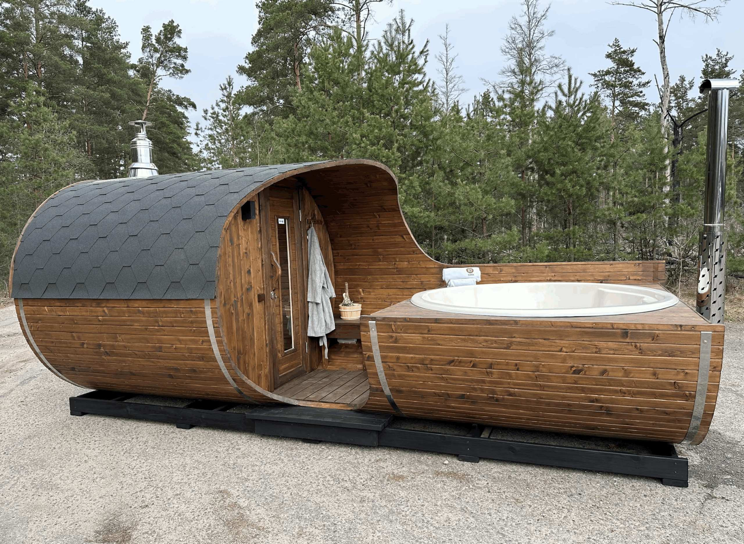Badstue i gran med galssfiberstamp.