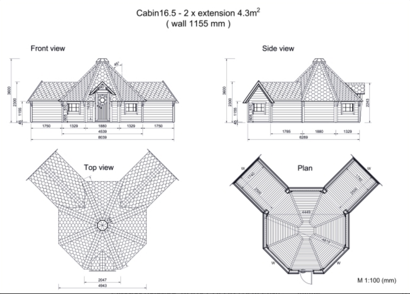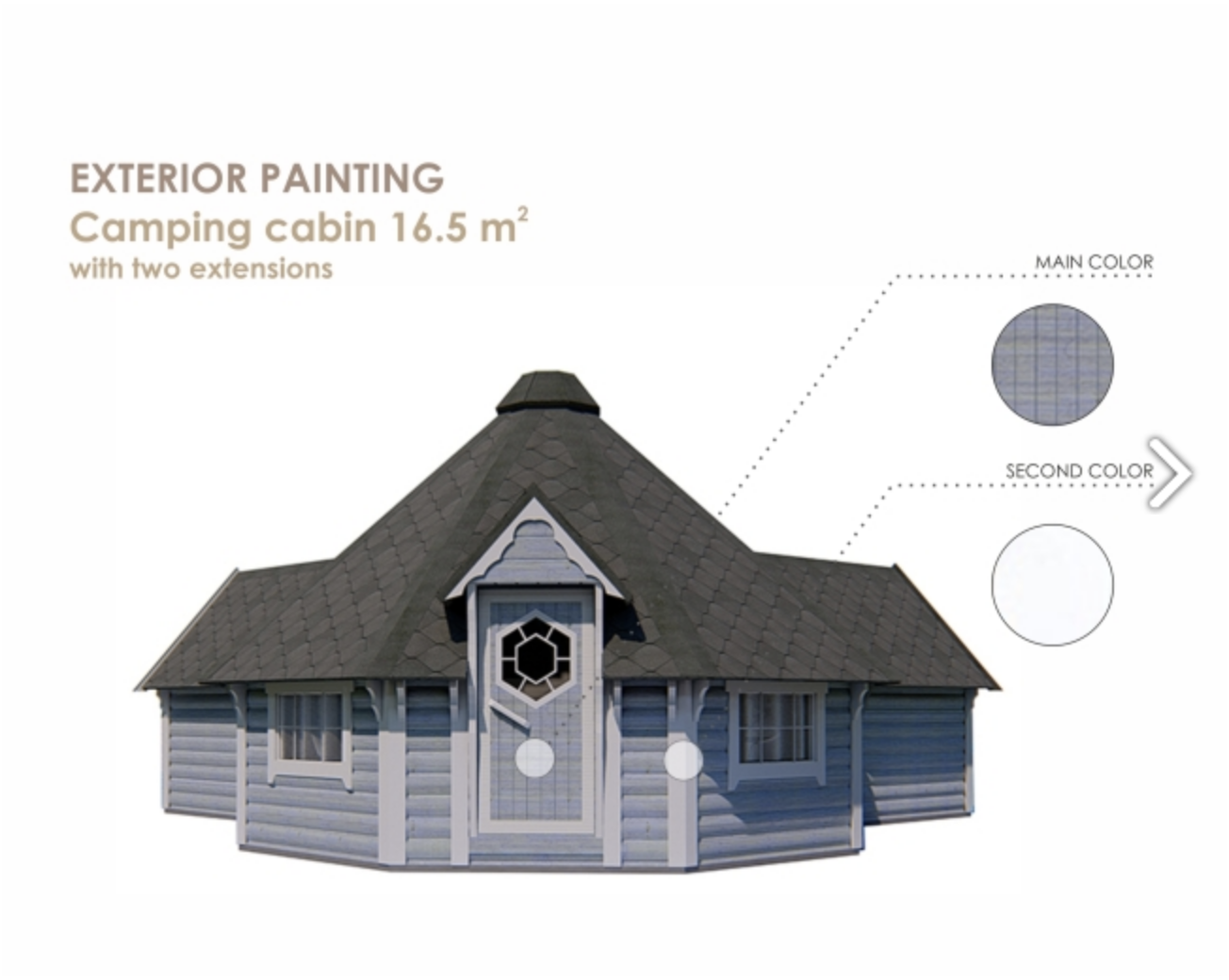 Camping hytte 16,5m2 med to stk tilbygg på 4,3m2 hver seg, 24.5m2 til sammen. Da har man plutselig to soverom, eller et soverom, et bad og stue/kjøkken i oppholdsrommet. Kan det bli bedre?